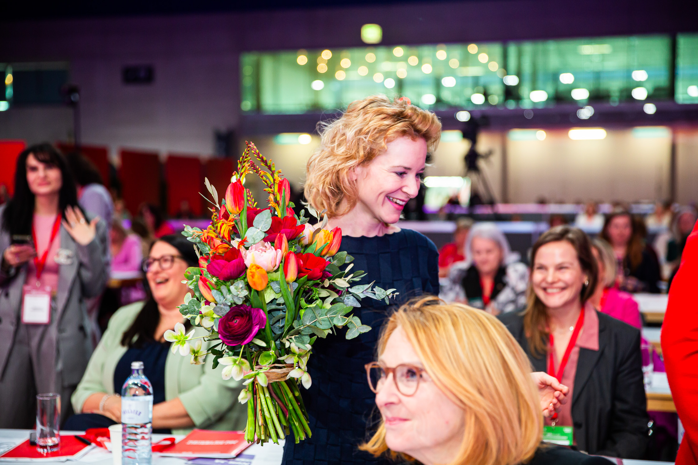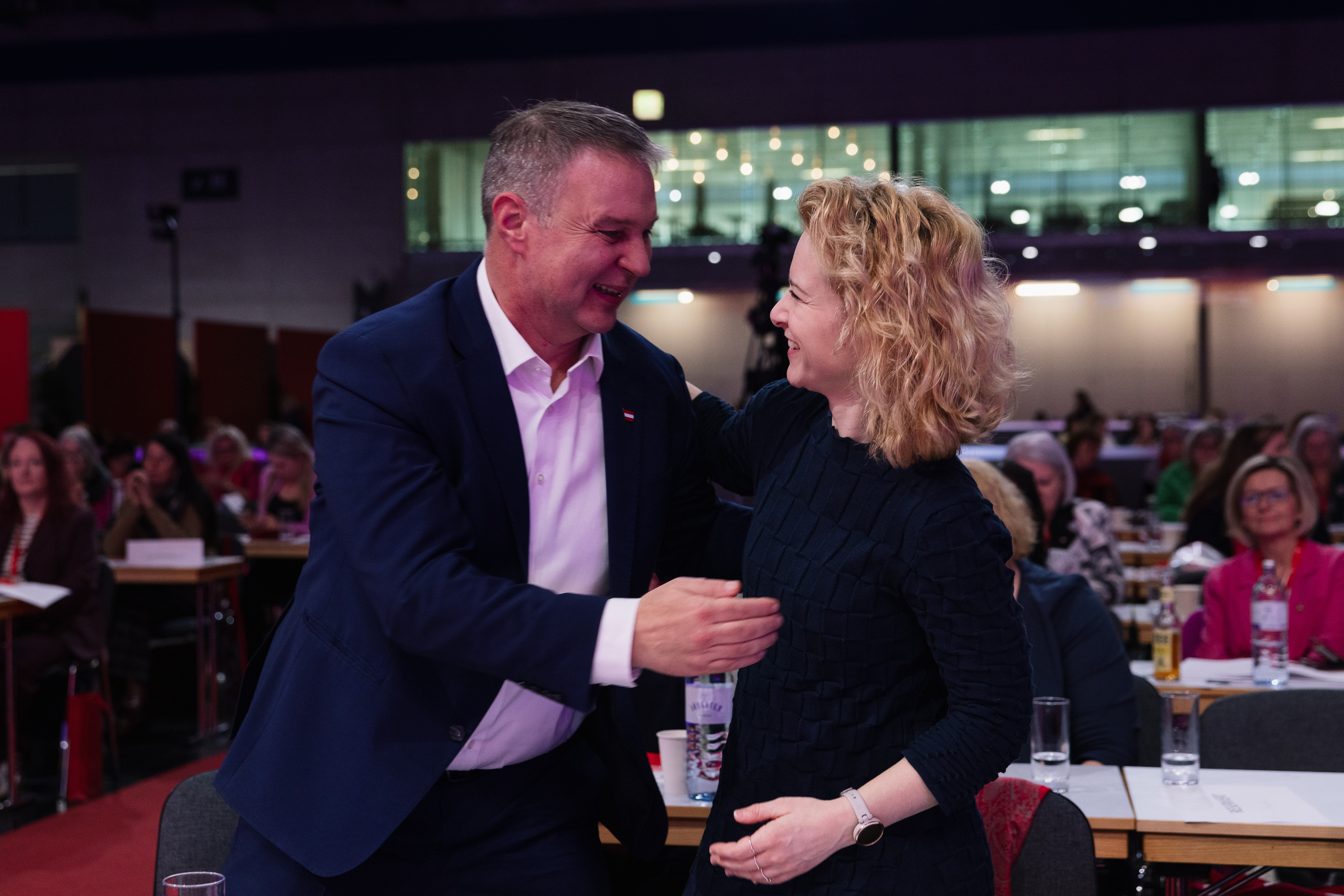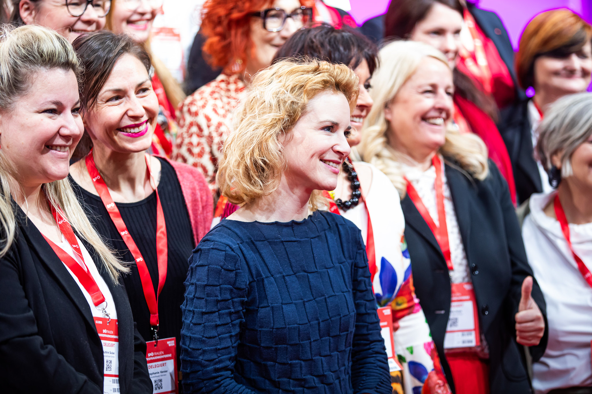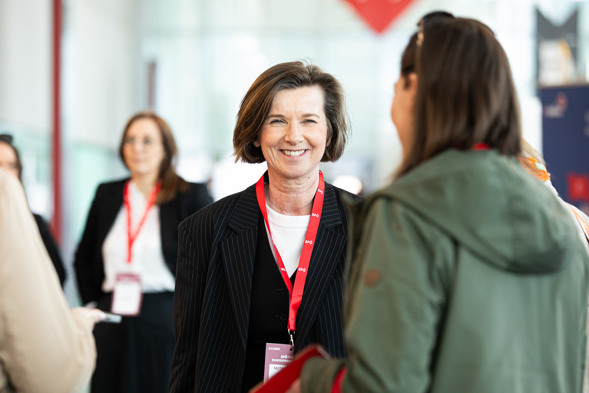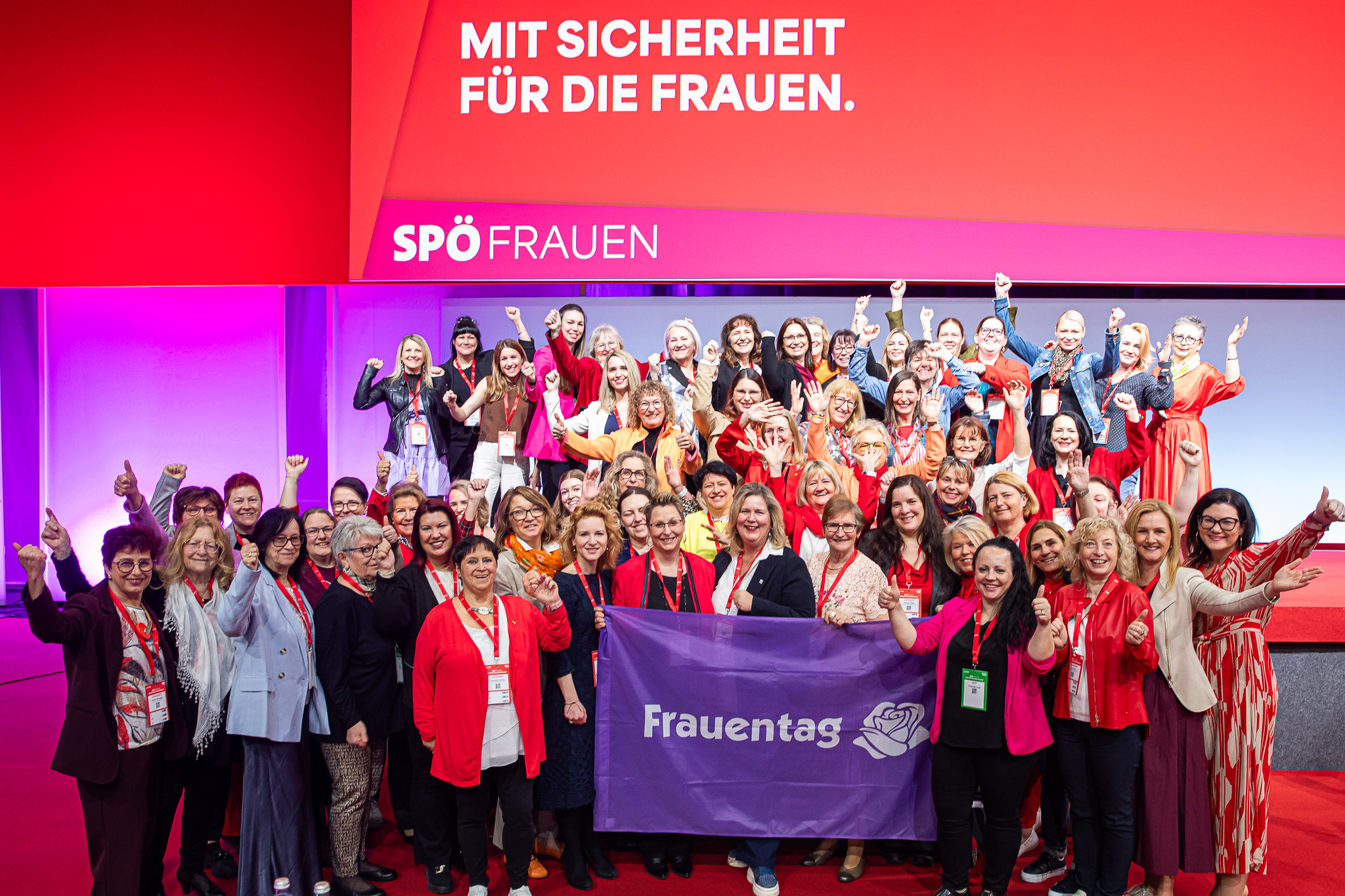 Rund 400 Delegierte und 200 Gäste sind am Freitag in die Messe Wien zur SPÖ-Bundesfrauenkonferenz gekommen. Darunter Finanzminister Markus Marterbauer und Staatssekretär Jörg Leichtfried, SPÖ-EU-Delegationsleiter Andreas Schieder und SPÖ-EU-Abgeordnete Evelyn Regner, SPÖ-Bundesgeschäftsführer Klaus Seltenheim, alle SPÖ-Landesfrauenvorsitzenden, Landesfrauengeschäftsführer*innen, stv. SPÖ-Klubvorsitzende Julia Herr, ÖGB-Frauenvorsitzende Christa Hörmann, FSG-Frauenvorsitzende Elfriede Schober, die Vorsitzende des Frauenrings Klaudia Frieben, Vertreter*innen von SJ, VSStÖ, JG und SoHo, die Bundesminister*innen a.D. Gabriele Heinisch-Hosek, Lore Hostasch und Hilde Hawlicek, Bundesrätin a.D. Irmtraut Karlsson und zahlreiche aktive und ehemalige Abgeordnete sowie Vertreter*innen aus den Bundesländern, Städten und Gemeinden und die Vorsitzenden der Konföderation der Kurden in Europa und kurdischer Frauen in Europa Faisa Younes und Jamila Amin.