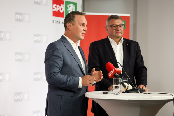 In der gemeinsamen Pressekonferenz mit dem steirischen SPÖ-Spitzenkandidaten Jörg Leichtfried betonte unser Bundesparteivorsitzender und Spitzenkandidat Andi Babler, dass er versteht, dass sich viele Menschen von der Politik abgewendet haben, weil sie den Eindruck haben, dass es nur mehr um Posten und Macht gehe und nicht um ihre Lebensrealitäten. Auch die SPÖ hat einen Teil dazu beigetragen – „dafür entschuldige ich mich und bitte um Ihr Vertrauen und die Chance, Politik anders und aus der Realität der Menschen zu denken. Wir sehen die Probleme der Menschen und lösen sie“, so Babler, der gemeinsam mit Leichtfried an die Nichtwähler*innen appellierte: „Wenn Sie die SPÖ wählen und der Balken der SPÖ in die Höhe fährt, sind wir ab Tag 1 in der Lage, die Lebensbedingungen zu verbessern.“ Leichtfried unterstrich: „Bitte gehen Sie zur Wahl und wählen Sie SPÖ, damit es allen in Österreich in Zukunft wieder besser geht. Andi Babler ist der Garant dafür!“