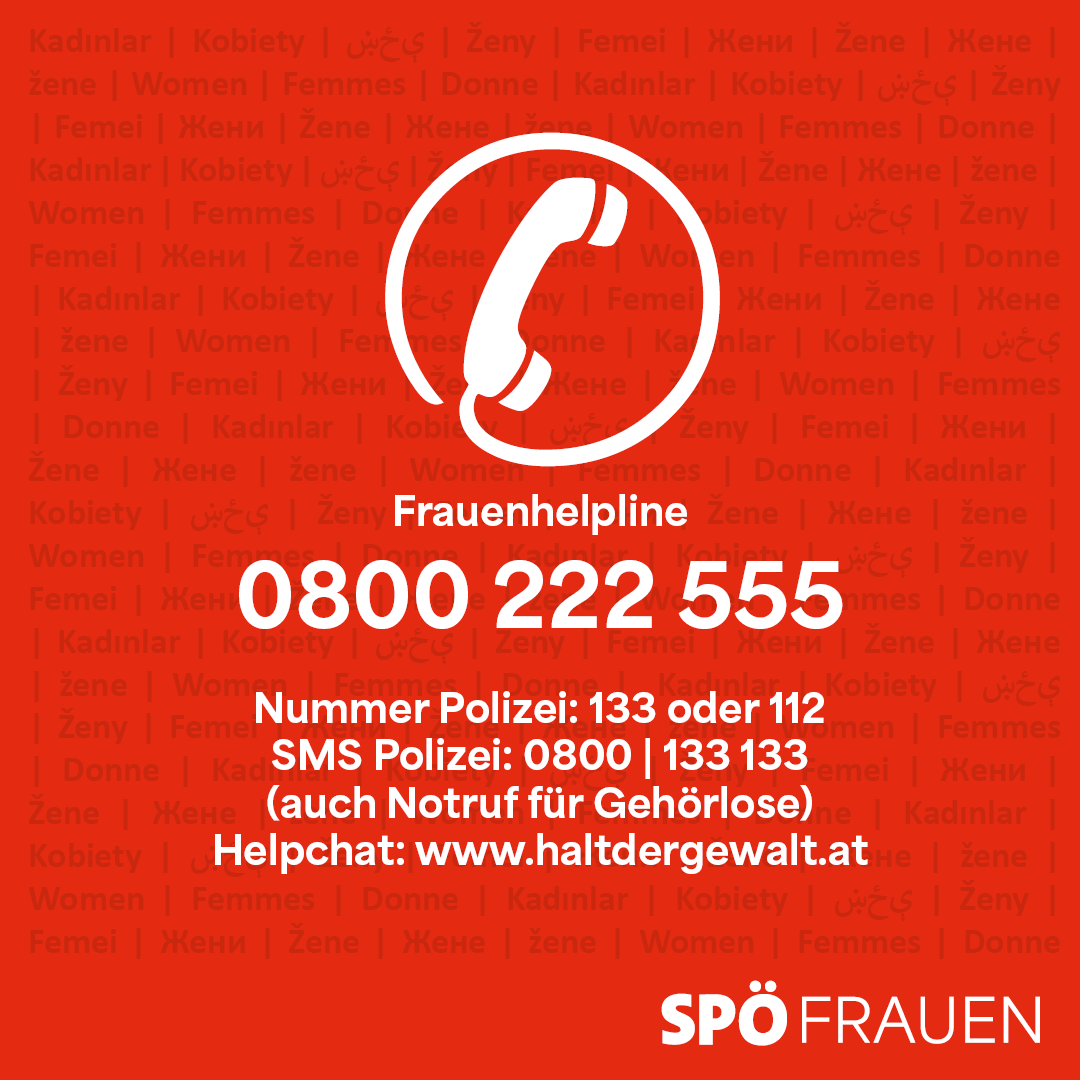Im Rahmen der internationalen Kampagne „16 Tage gegen Gewalt“ machen die SPÖ-Frauen mit Transparenten „Stoppt die Gewalt an Frauen“ auf die dramatische Situation aufmerksam und verteilen Infokarten mit wichtigen Notrufnummern und Internetadressen:
