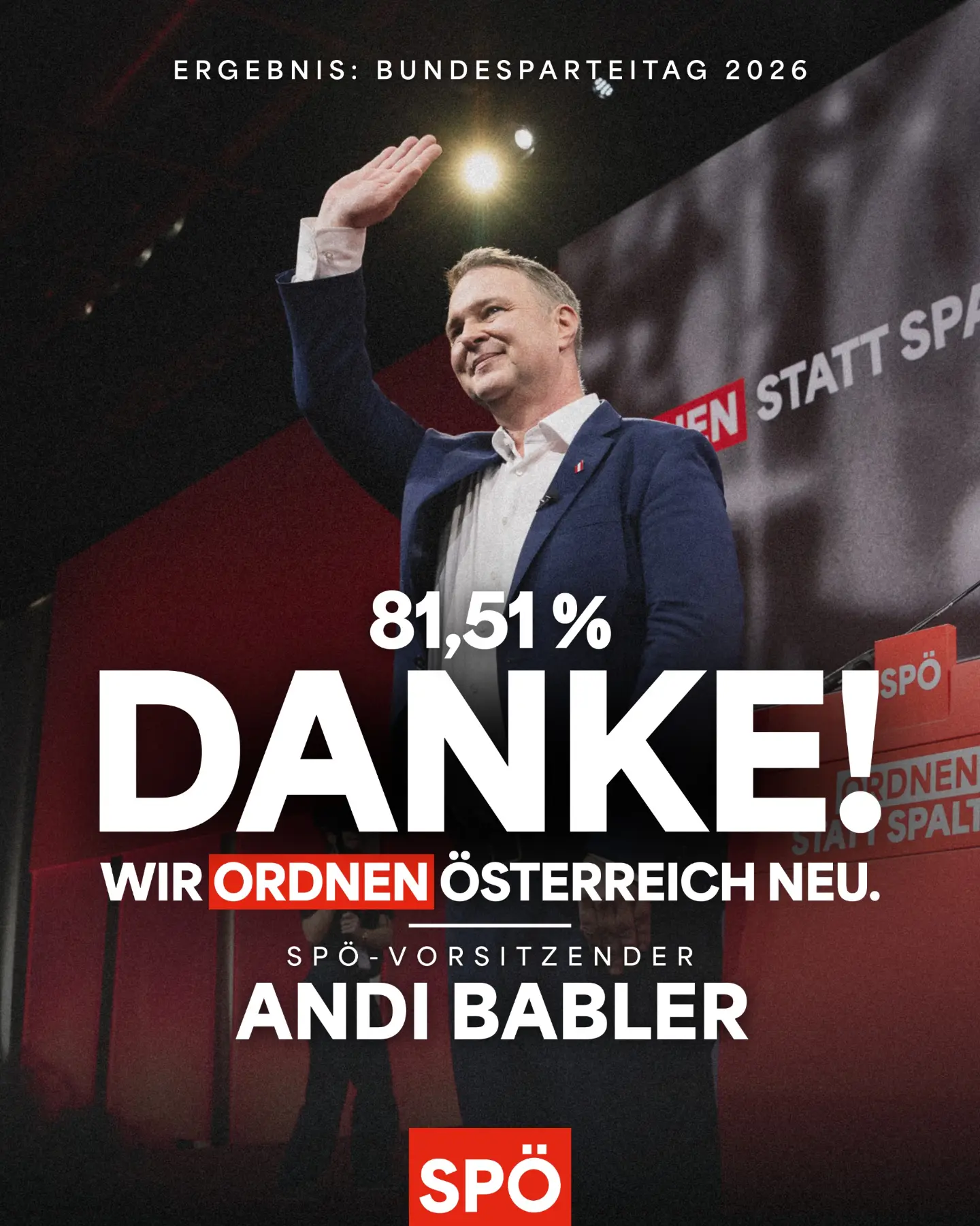 „DANKE für diesen starken SPÖ-Bundesparteitag 2026. Österreich braucht eine starke Sozialdemokratie. Nicht irgendwann. Jetzt.“