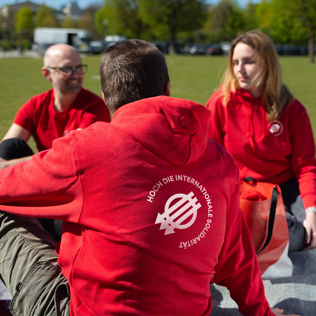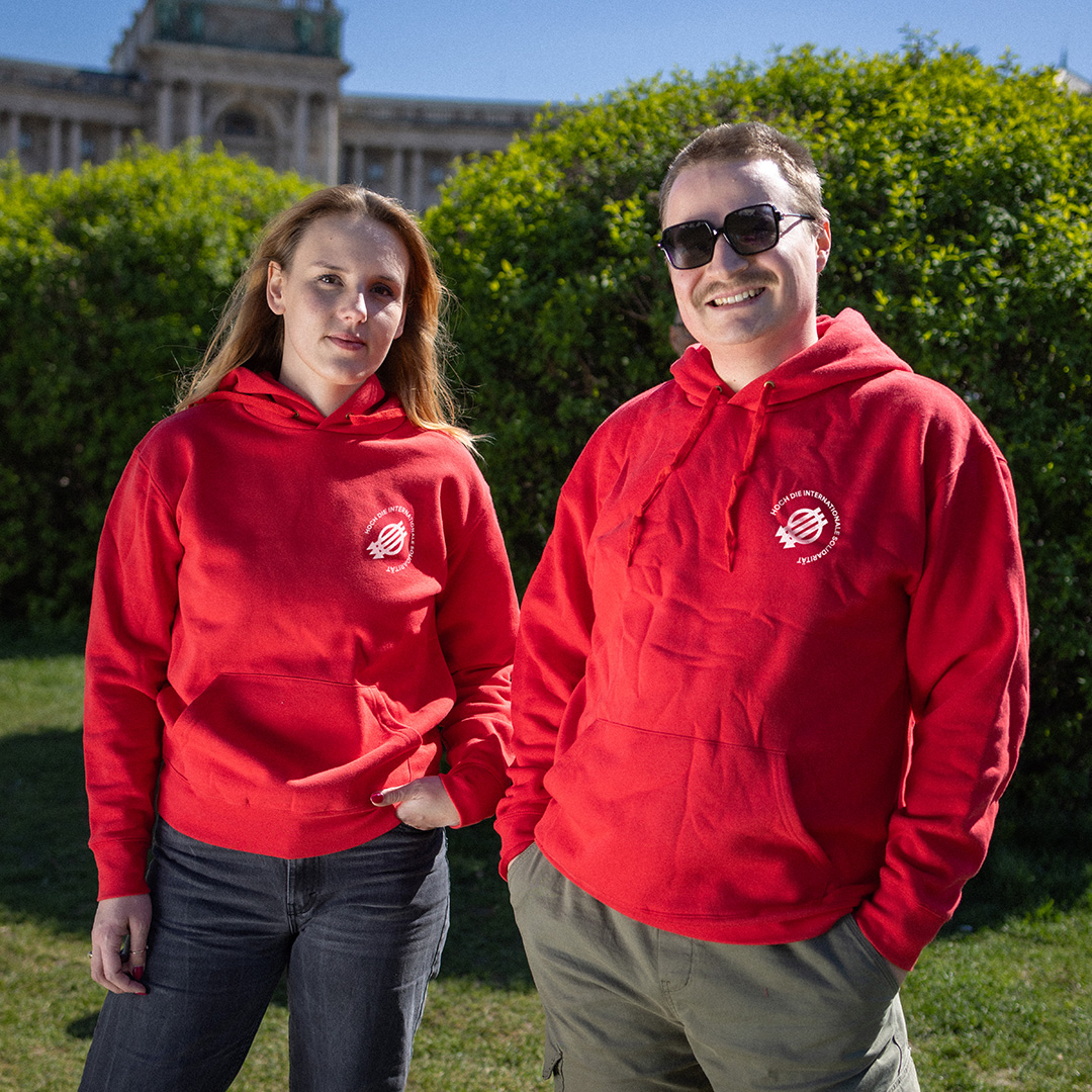 Hoch die internationale Solidarität! Jetzt gibt es einen Sweater mit dem epischen Drei-Pfeile-Symbol und unserem Leitspruch. Besser wird’s nicht, also gleich zugreifen und eindecken – für einen feschen 1. Mai und einen angenehmen Sommer, auch wenn es mal etwas frischer draußen ist.